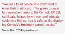 Comodo EV SSL has helped Hayneedle.com build trust with its rapidly growing customer base, and increase the company's reputation as a secure and trusted e-merchant. As online shoppers become increasingly security-conscious, even this already highly successful e-merchant (#83 on the Internet Retailer 500) found business advantage in upgrading the security and trust features of its 220 websites.