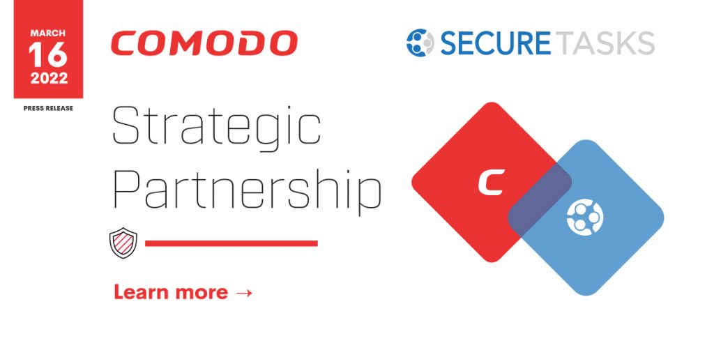SecureTasks and Comodo Security Solutions sign a strategic partnership agreement (Bloomfield New Jersey, USA / Singapore, SINGAPORE) – SecureTasks, the world’s first cybersecurity services marketplace today announced that it has signed a strategic partnership agreement with New Jersey-based Comodo Security Solutions. The agreement provides for SecureTasks to incorporate key technology and services from Comodo into …