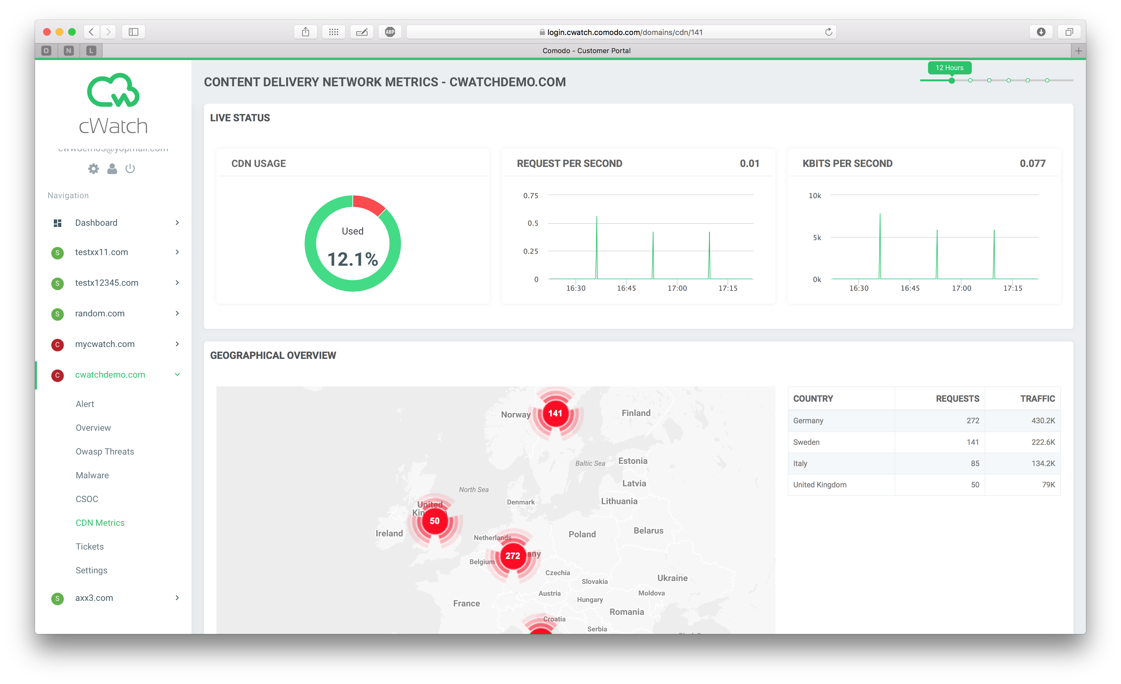9) Go to CDN Metrics Page to see your requests (it may take 30 minutes for cybersecurecdn to provide initial metrics)
