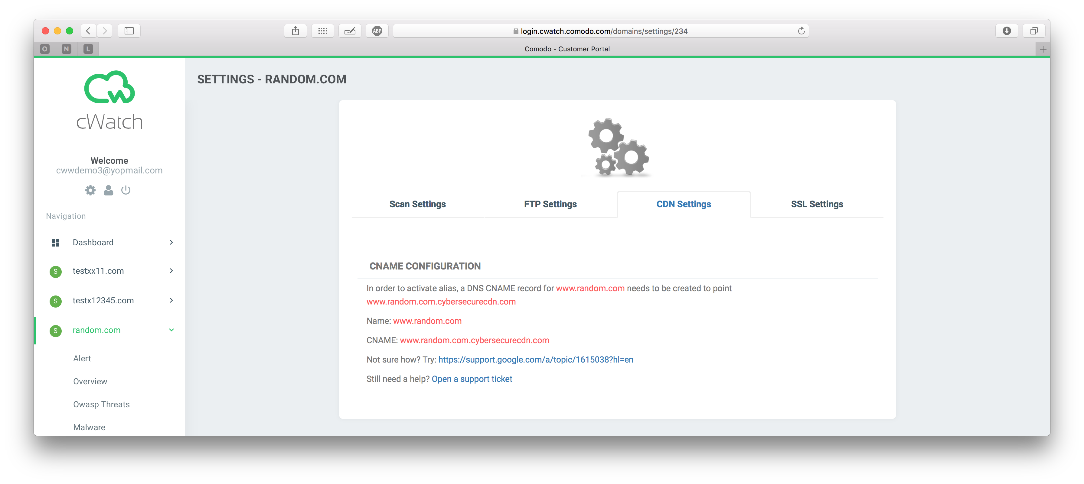 6) Copy the CNAME given, for example www.test1.com.cybersecurecdn.com