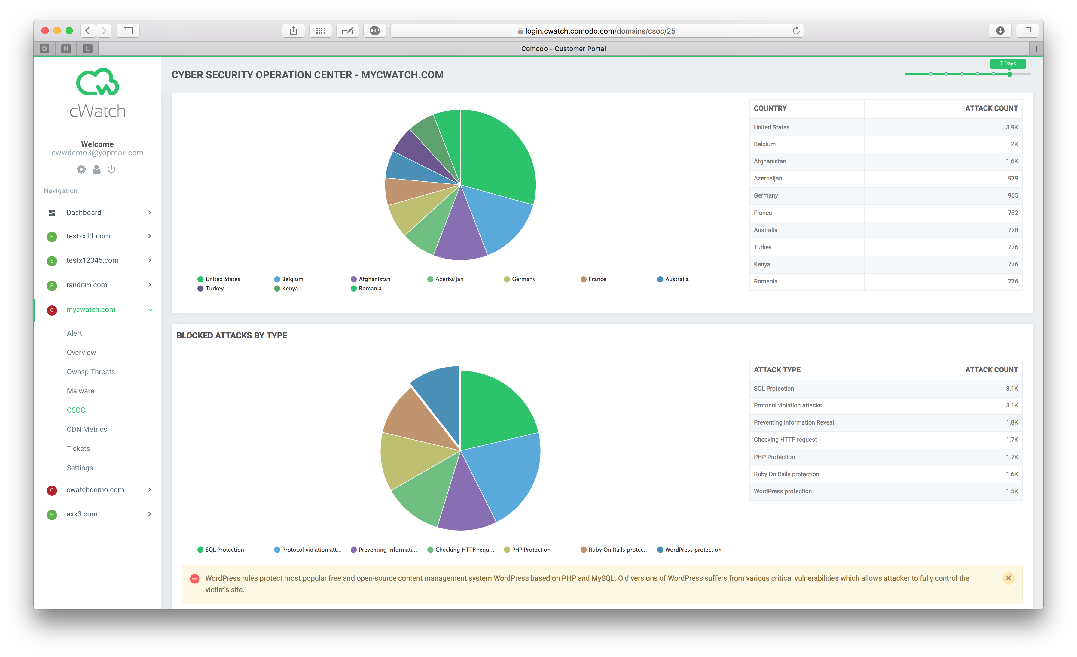 Integrated WAF and SIEM in each Point of Presence (PoP) make Comodo cWatch the most secure CDN in the world